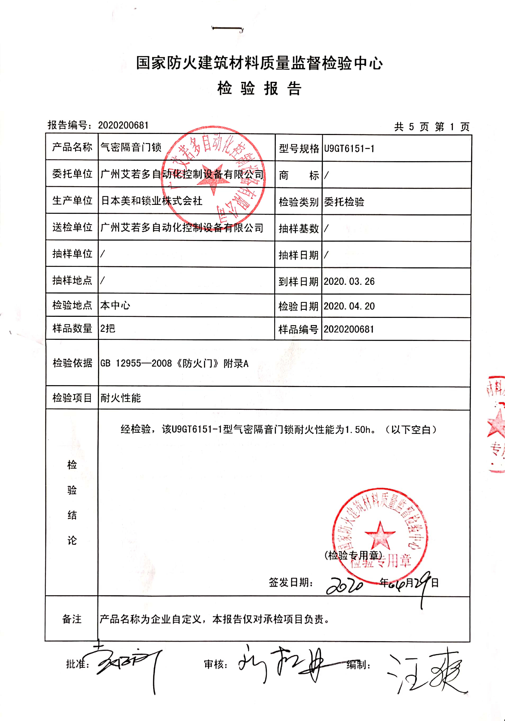地氣密隔音門鎖防火檢測報告